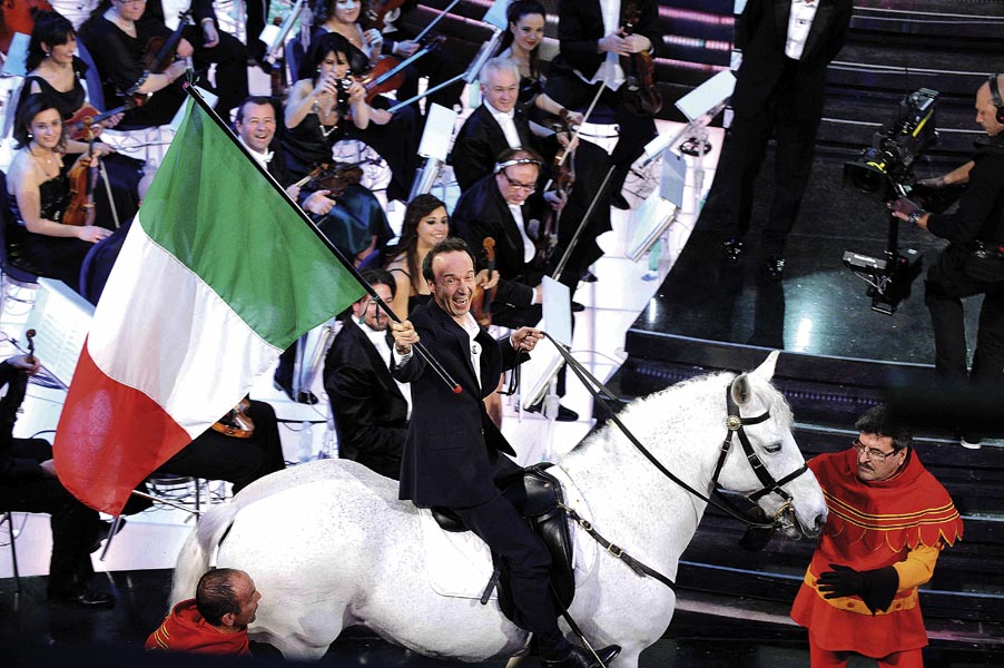 Un comico ci ha salvati dal ridicolo. Almeno quel tanto che serviva per il momento. Con la sua esibizione al Festival di Sanremo – il teatrale ingresso con cavallo bianco e vessillo tricolore, l’appassionata …