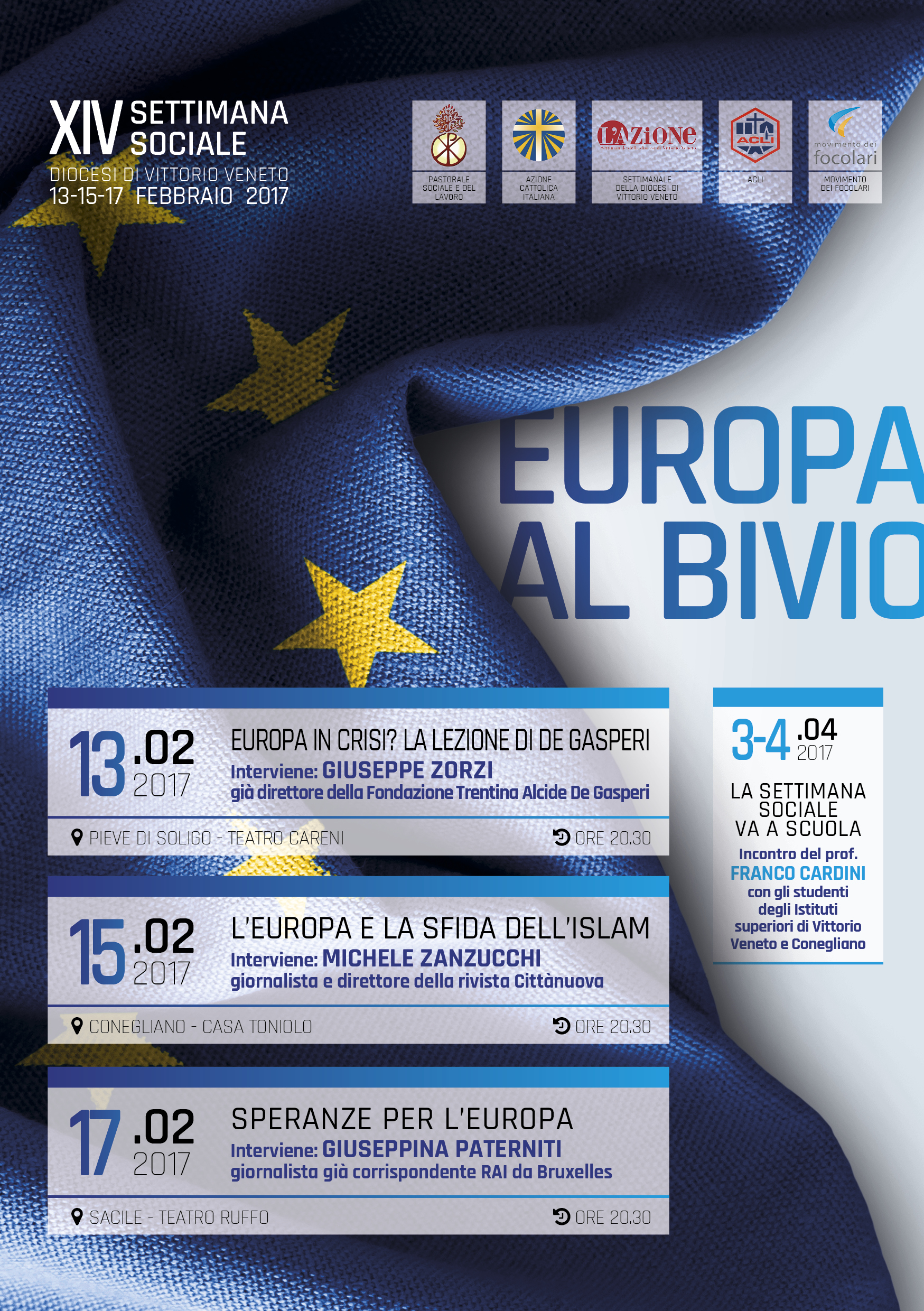 Nell’ambito della XIV Settimana Sociale della Diocesi di Vittorio Veneto si svolgerà dal 13 al 17 febbraio 2017 un ciclo di incontri dedicati all’Europa: